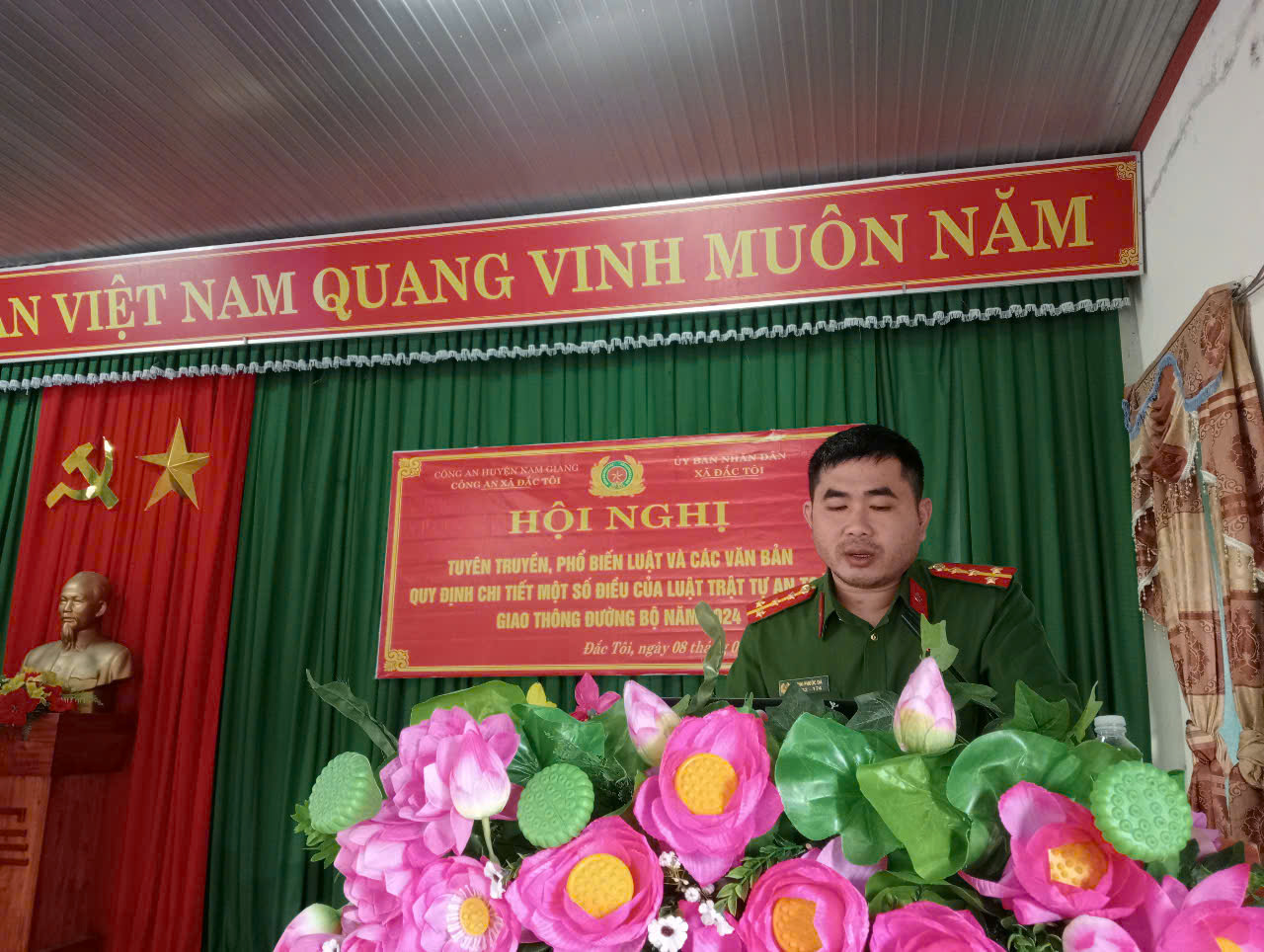 Đắc Tôi đã tổ chức hội nghị tuyên truyền, phổ biến luật và các văn bản quy định một số điều trật tự an toàn giao thông nhằm nâng cao nhận thức và ý thức chấp hành luật giao thông trong cộng đồng.
