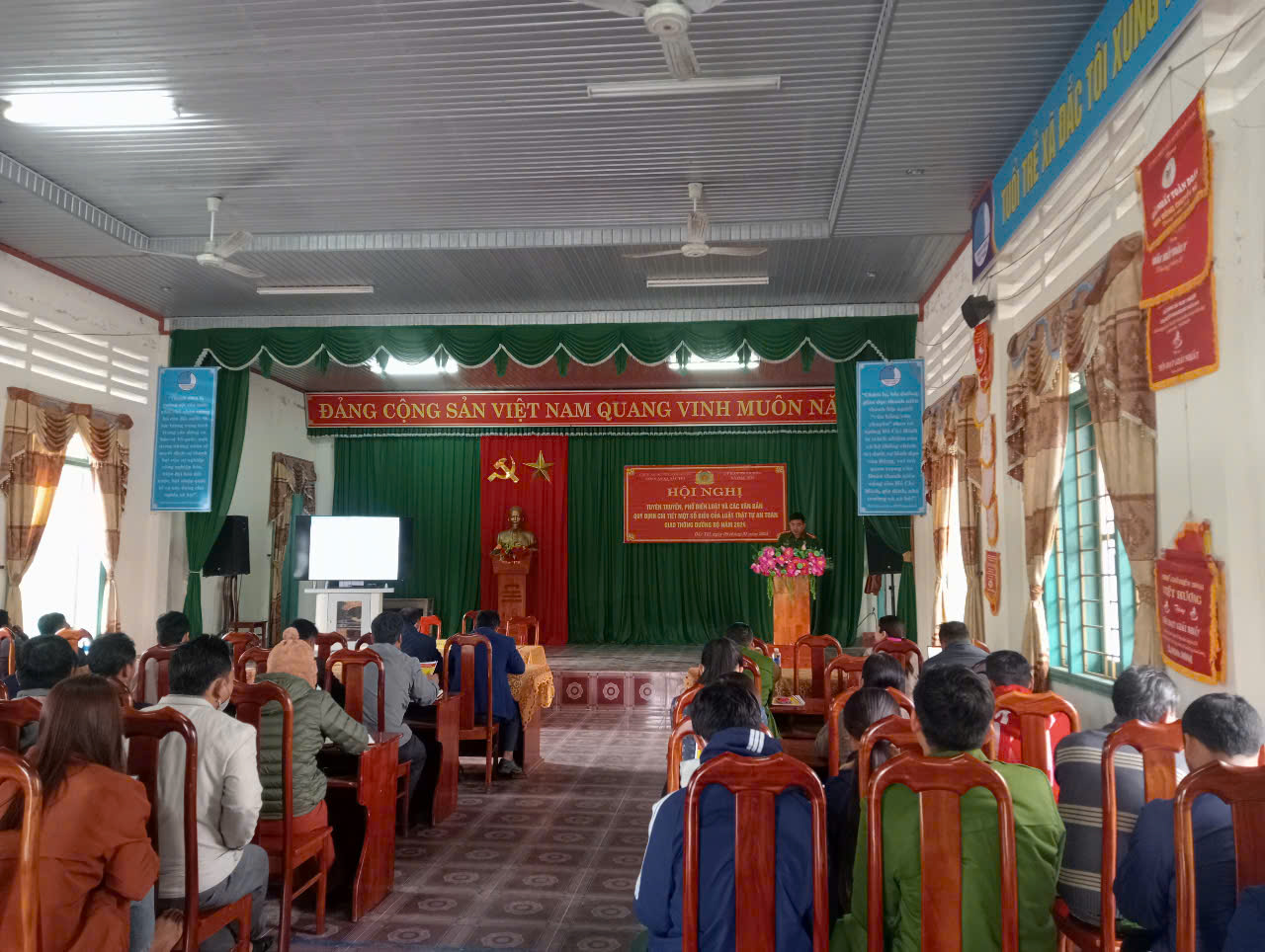 Hội nghị diễn ra với sự tham gia của đại diện các ban ngành, đoàn thể, các tổ chức chính trị - xã hội cùng đông đảo người dân địa phương. Tại hội nghị, các cán bộ công an đã trình bày những điểm mới trong luật giao thông đường bộ, cũng như nhấn mạnh những quy định cần chú ý để đảm bảo an toàn khi tham gia giao thông.
