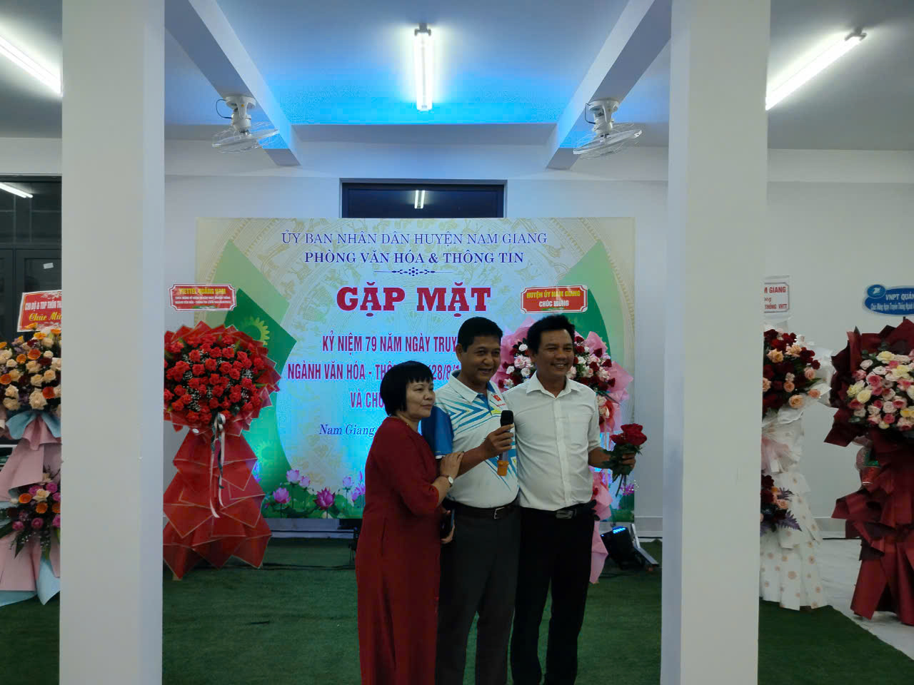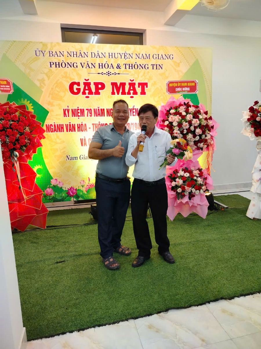 Chiều ngày 26/8/2024 Phòng văn hóa - Thông tin huyện Nam Giang tổ chức kỹ niệm 79 năm ngày truyền thống văn hóa (28/8/1945 - 28/8/2024). Đến thăm và chúc mừng nhân dịp sự kiện này có lãnh đạo TT huyện ủy có đồng chí Lê văn hường - tỉnh ủy viên- Bí thư huyện ủy làm trưởng đoàn.