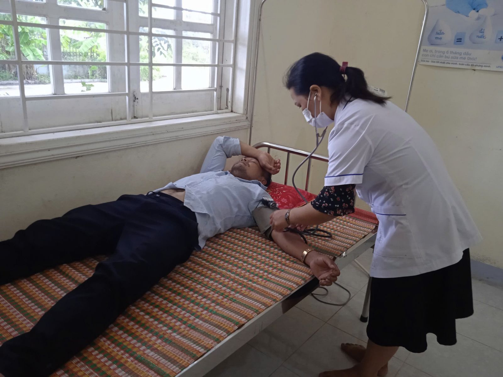 Nhiều người dân đến khám bệnh tại Trạm y tế xã Đắc Tôi.
