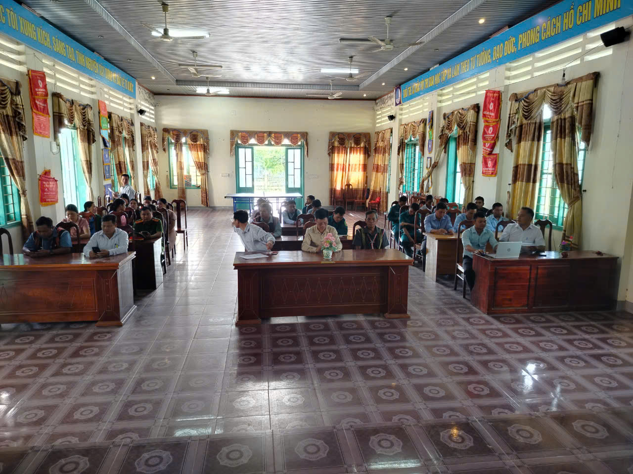 Tất cả CBCC; KCT; lãnh đạo xã có mặt đông đủ tại buổi lễ chào