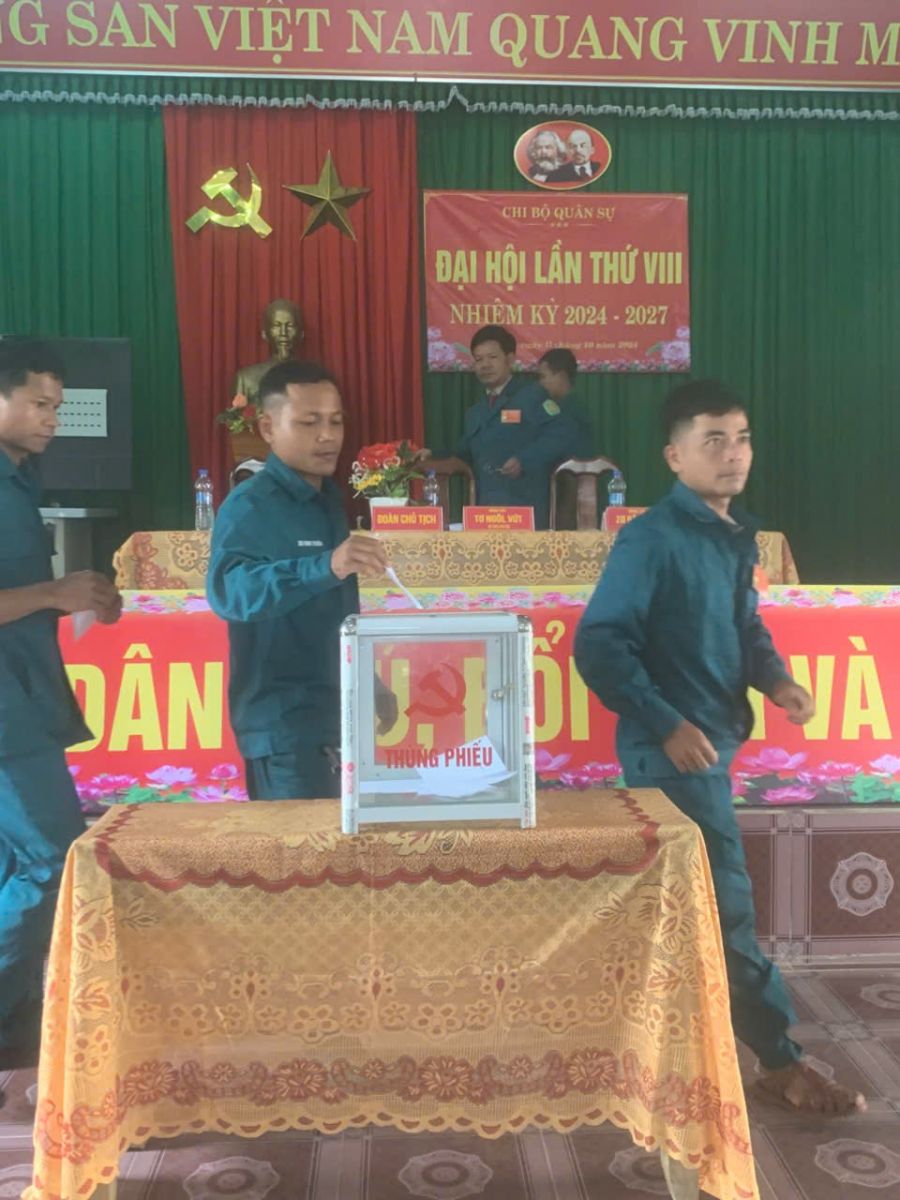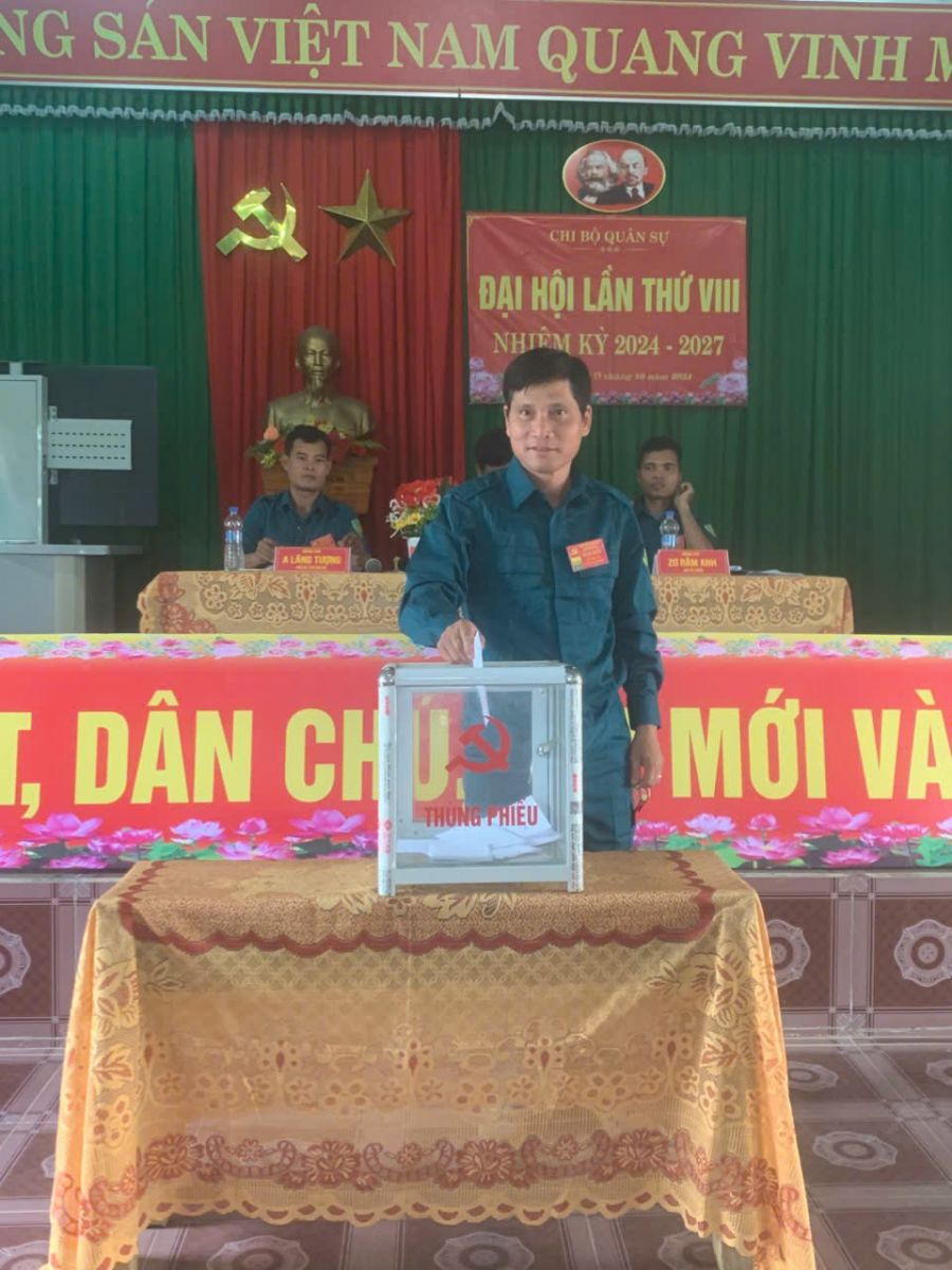 Đồng chí Brôl Trường - CT. UBND tham gia sinh hoạt tại chi bộ quân sự tham gia bỏ phiếu bầu chi ủy và bầu các chức danh bí thư và phó bí thư nhiệm kỳ 2024 - 2027