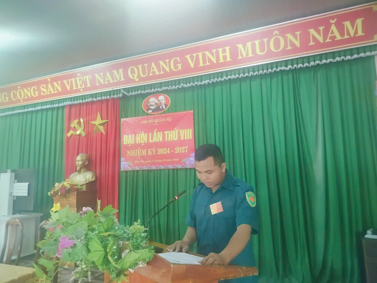 Sáng ngày 17/10/2024 Chi bộ quân sự xã Đắc Tôi tổ chức đại hội điểm chi bộ quân sự xã Đắc Tôi lần thứ VIII, nhiệm kỳ 2024 – 2027. Đến dự chỉ đạo với đại hội có đồng chí: Zơ Râm Hịnh – Phó bí thư thường trực Đảng ủy xã Đắc Tôi và các đồng chí bí thư các chi bộ trực thuộc Đảng bộ xã Đắc Tôi.