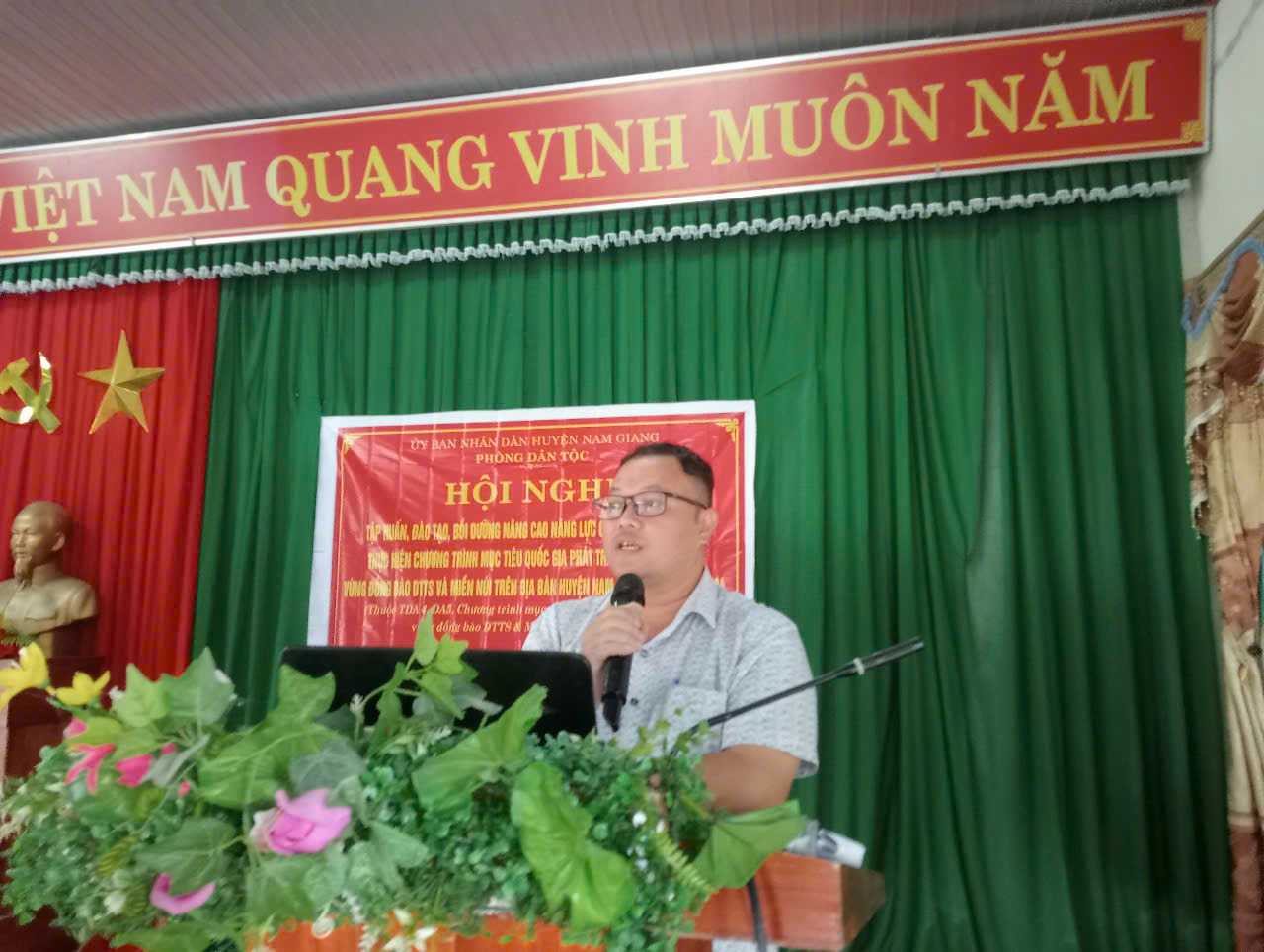 ảnh: báo cáo viên ông A lăng Duy phó trưởng phòng dân tộc huyện Nam Giang