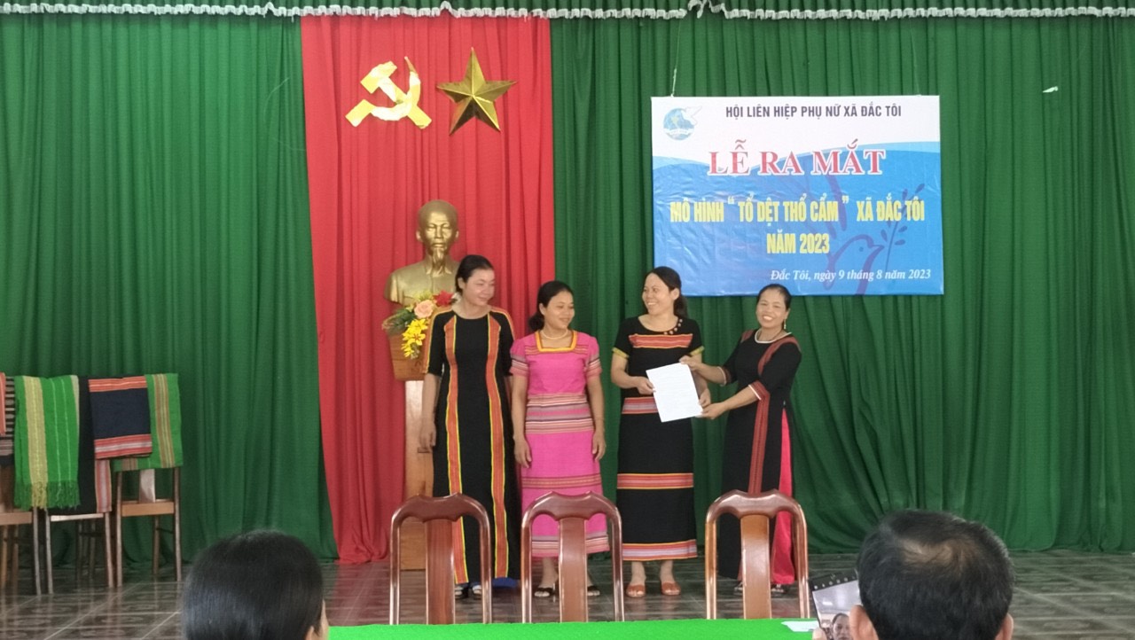 Lễ ra mắt tổ dệt thổ cẩm phụ nữ xã Đắc Tôi năm 2023