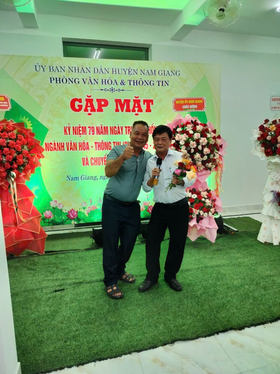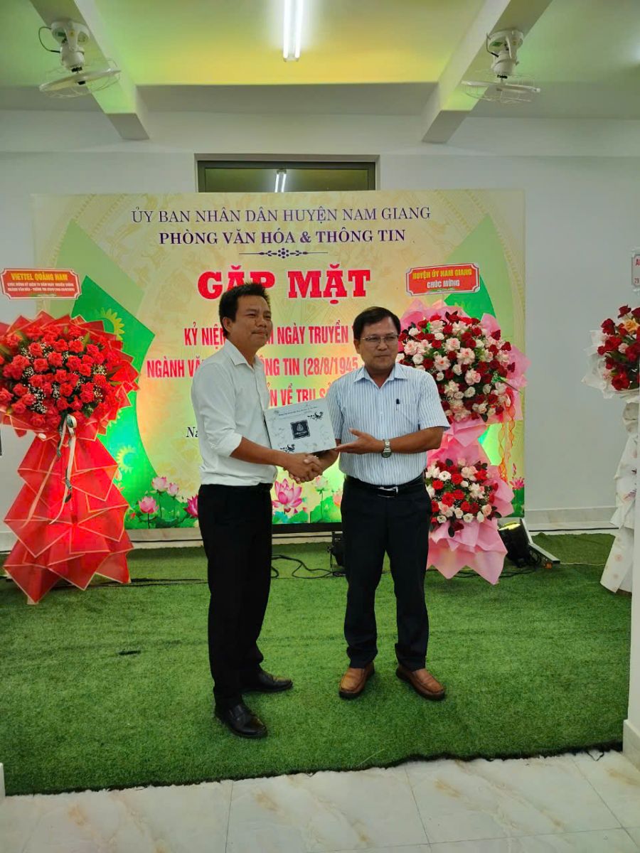 Chiều ngày 26/8/2024 Phòng văn hóa - Thông tin huyện Nam Giang tổ chức kỹ niệm 79 năm ngày truyền thống văn hóa (28/8/1945 - 28/8/2024). Đến thăm và chúc mừng nhân dịp sự kiện này có lãnh đạo TT huyện ủy có đồng chí Lê văn hường - tỉnh ủy viên- Bí thư huyện ủy làm trưởng đoàn.